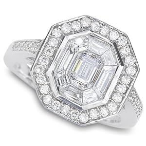 Art deco style emerald cut diamond engagement ring, vintage style 18ct